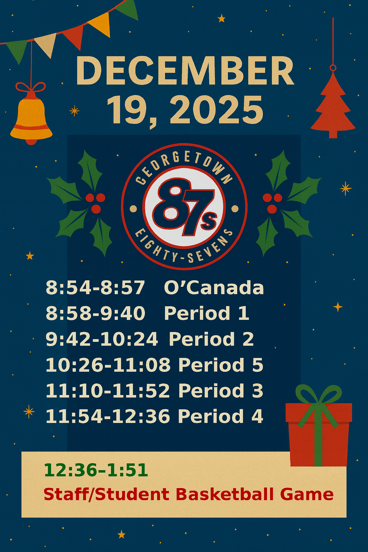 The week of November 24-28 is Bullying Awareness Week at GDHS. The theme of the week is “We Are Georgetown Strong” and the focus is on Kindness, Caring, and Connection . When we create a safe and inclusive school community we are all more likely to treat one another in a positive manner. There will be activities both in classes and at lunch time in the cafe, library and other common areas, to encourage a positive climate for learning here at our school. Please encourage your son or daughter to participate in some of the fun opportunities planned for the week.